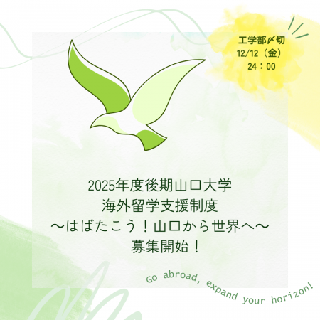 山口大学海外留学支援制度~はばたこう!山口から世界へ~募集開始