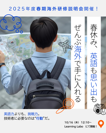 2025年度工学教育研究センター主催夏期海外研修説明会を実施します。興味のある学生は奮ってご参加ください。
