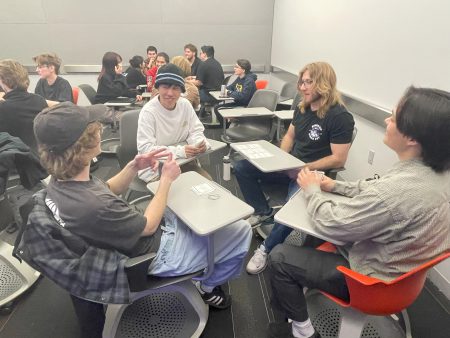 メタバース留学のVRが気になる学生は、実際にMetaQuestを装着して、IMMERSEの体験も行いました。